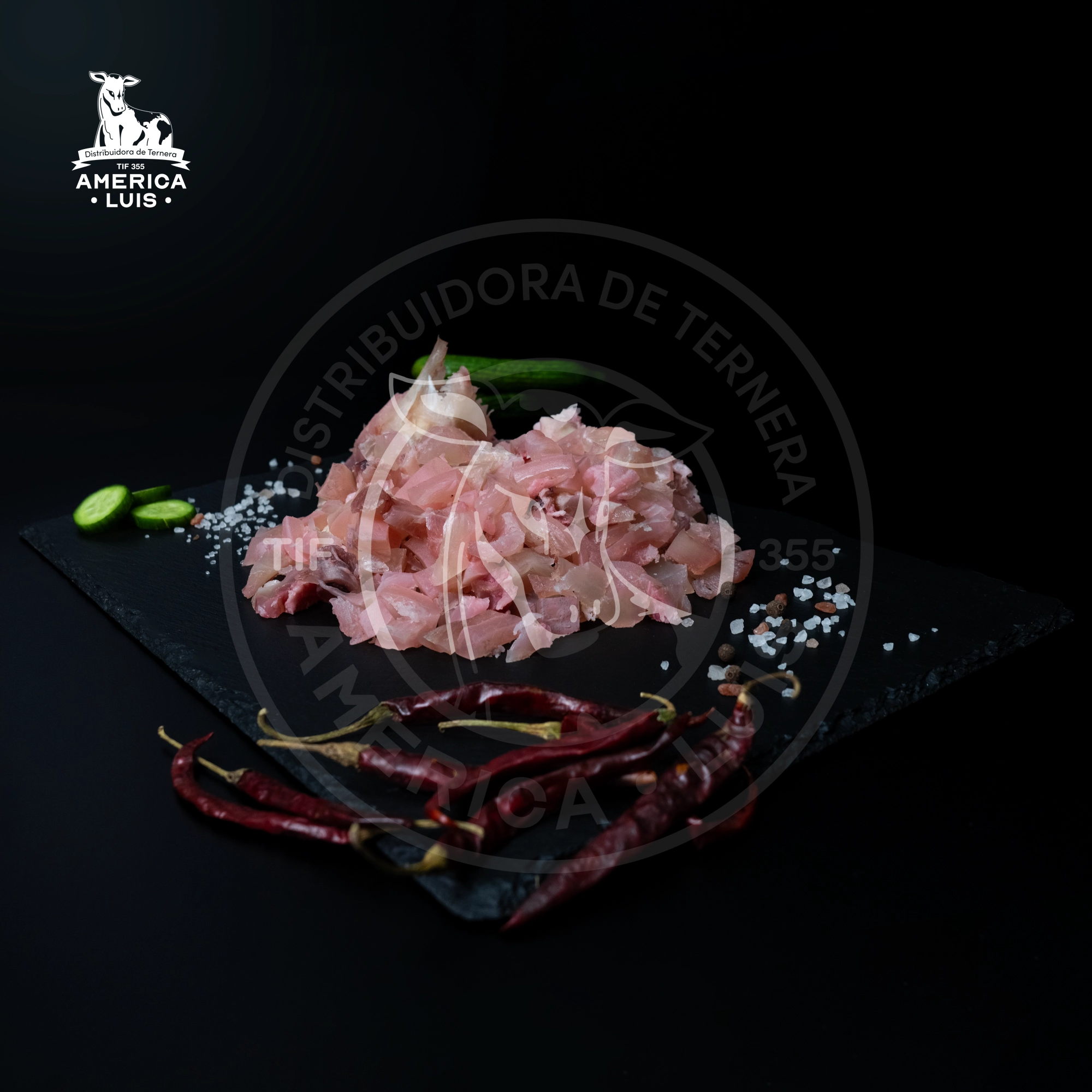 La Pata de Res Picada es un clásico de la cocina tradicional mexicana, valorada por su textura gelatinosa y su capacidad para absorber los sabores de vinagres, especias y chiles en escabeche. Una vez cocida y finamente picada, se convierte en el ingrediente principal de las icónicas tostadas de pata, donde aporta una consistencia suave y un sabor lleno de carácter. Su riqueza en colágeno la hace no solo deliciosa, sino también reconfortante, ideal para disfrutarse fría o a temperatura ambiente, acompañada de lechuga, crema, salsa y un toque de limón. Un antojo auténtico que evoca tradición y sabor en cada bocado.