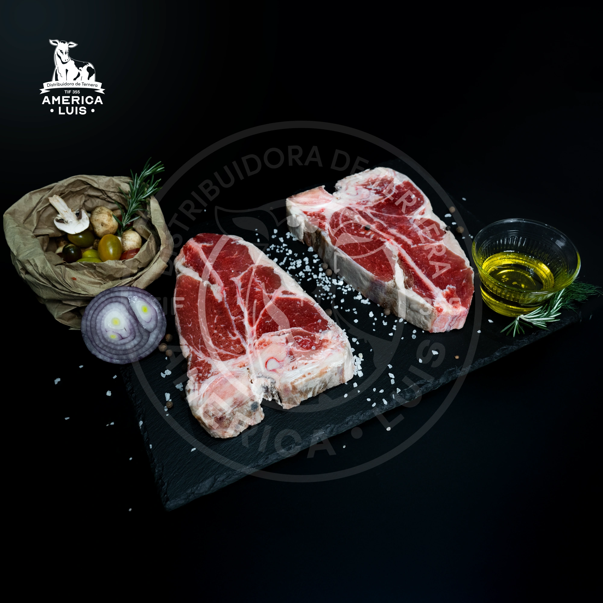 El T-Bone es un corte legendario que combina lo mejor de dos mundos en una sola pieza. Su característica forma de ‘T’ divide dos cortes excepcionales: por un lado, la intensidad y jugosidad del New York; por el otro, la inigualable terneza del Solomillo. Proveniente del lomo corto de la res, este corte ofrece una experiencia gastronómica única, con una textura equilibrada y un sabor profundo que se magnifica al cocinarse a la parrilla o a la plancha. Su hueso central potencia los jugos naturales de la carne, creando un bocado suculento y lleno de carácter. Ideal para quienes buscan disfrutar de la combinación perfecta entre suavidad y firmeza, el T-Bone es un clásico indiscutible que representa la esencia de una buena parrillada.